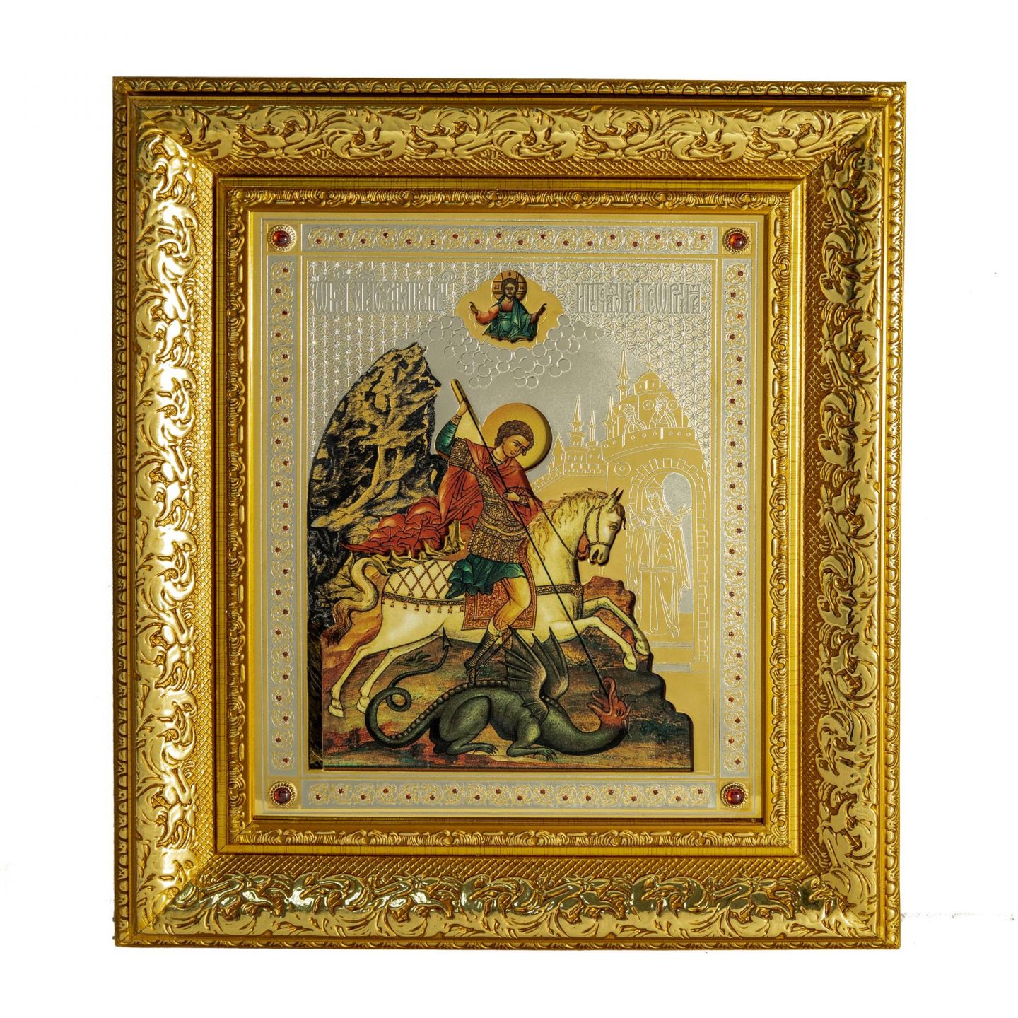 Икона Георгий Победоносец (2967) [большая], никель, золото, фианиты, кабошоны