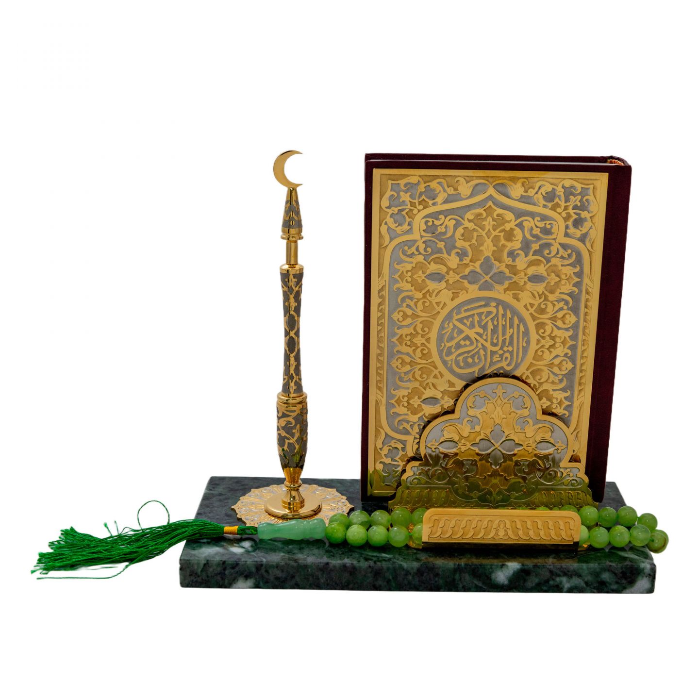 Эксклюзивный набор "АЛЬ-ФАХМ" Коран на подставке, ручка, четки