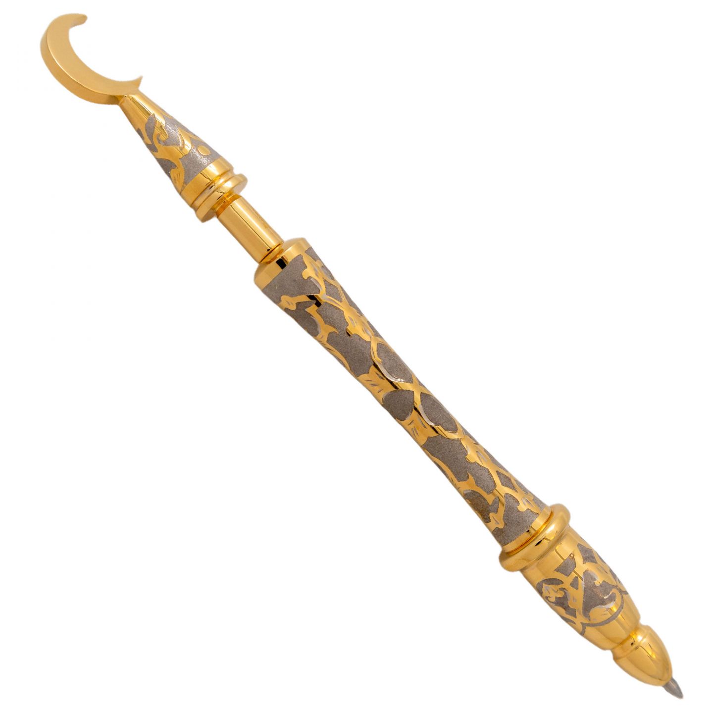 - Золотая ручка с полумесяцем на навершии и гравировкой узора (160×15 мм);