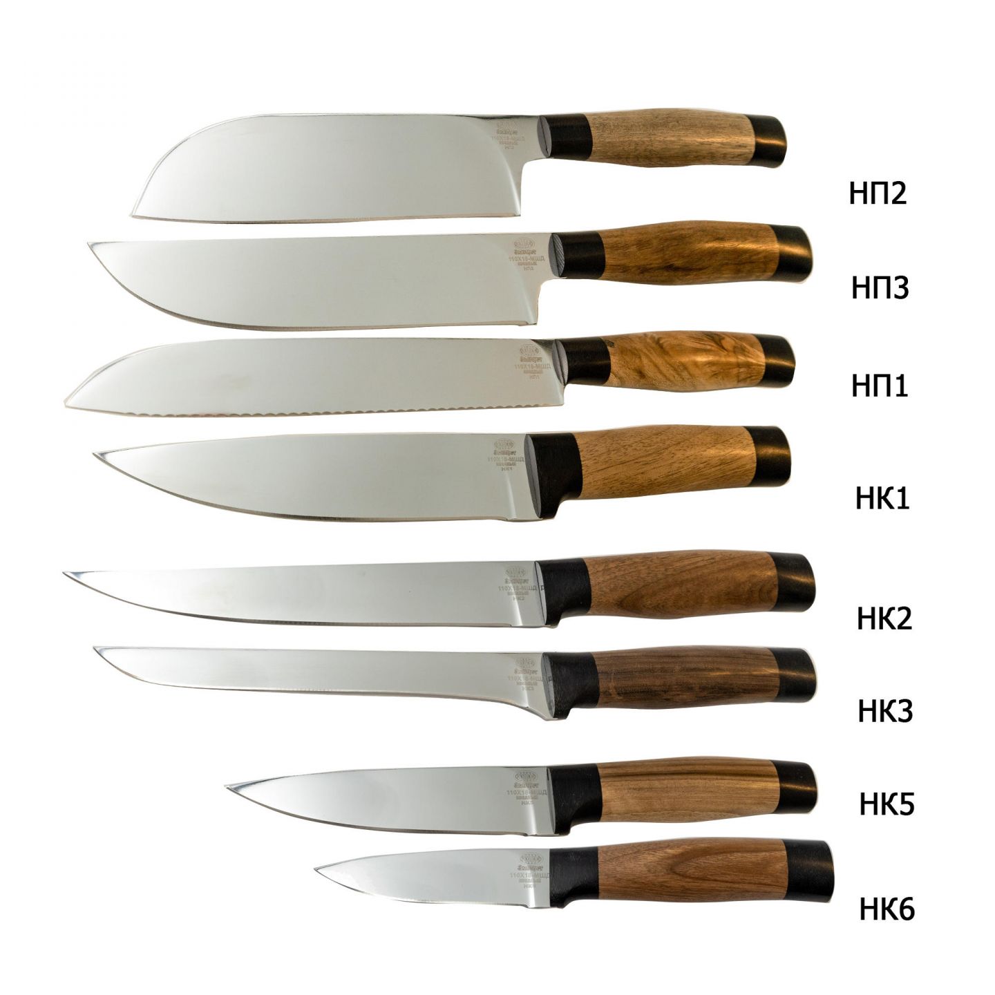 Набор кухонных ножей из 8 штук (2026.01), сталь 110Х18 МШД, рукоять орех, текстолит