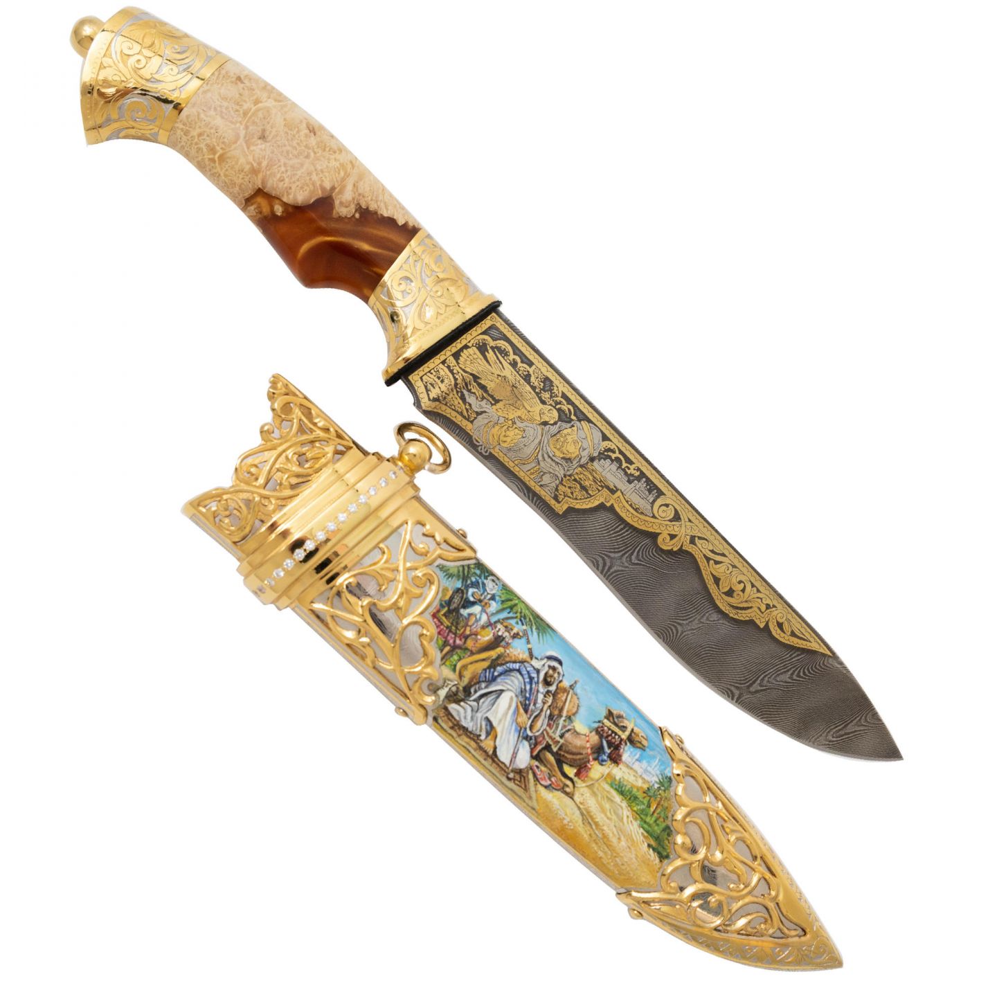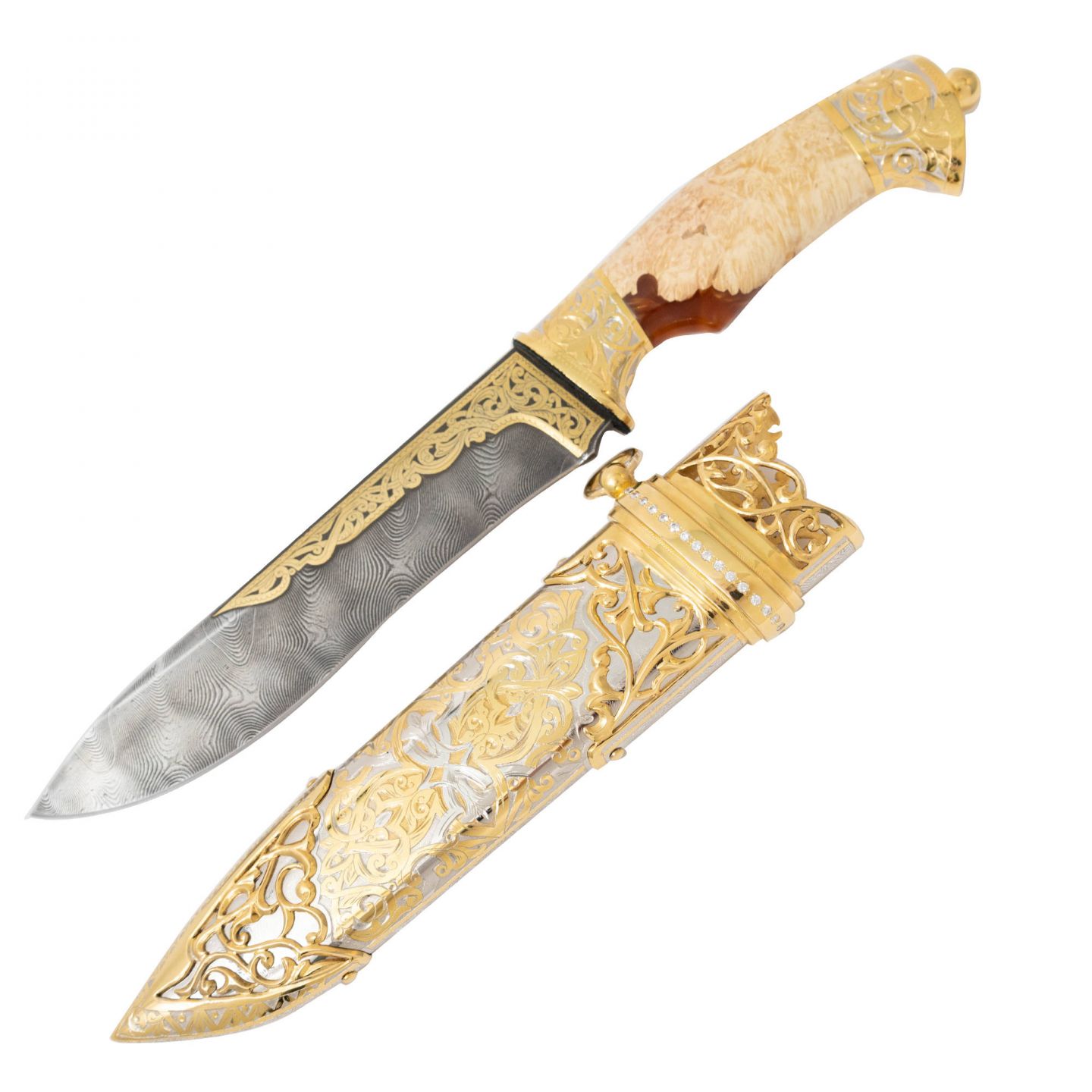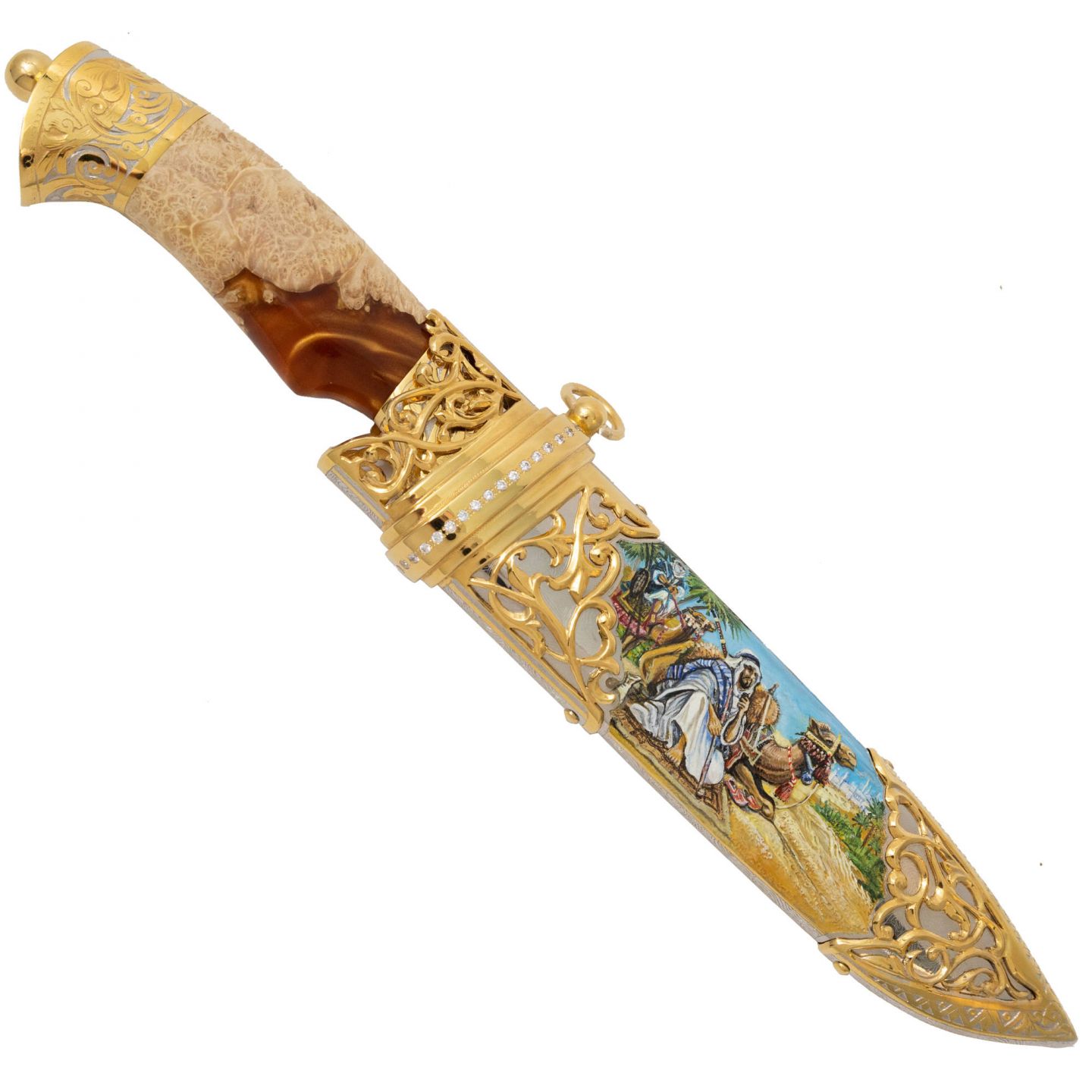 Нож украшенный Н1Т (651.3), сталь У10А-7ХНМ, цельнометаллические ножны, никель, золото, акрил, рукоять смола