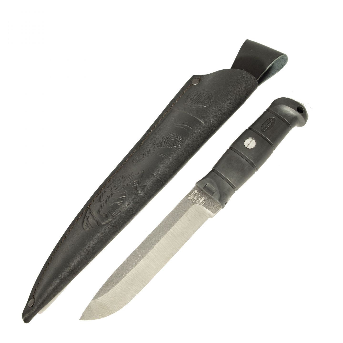 В комплекте: нож, кожаные ножны с фиксацией на поясе, сертификат соответствия и документы для отчетности. Гарантия производителя — 1 год. Отправляем заказы по России транспортными компаниями и Почтой России, срок доставки от 5 дней. Для корпоративных клиентов доступно нанесение логотипа на клинок или ножны.