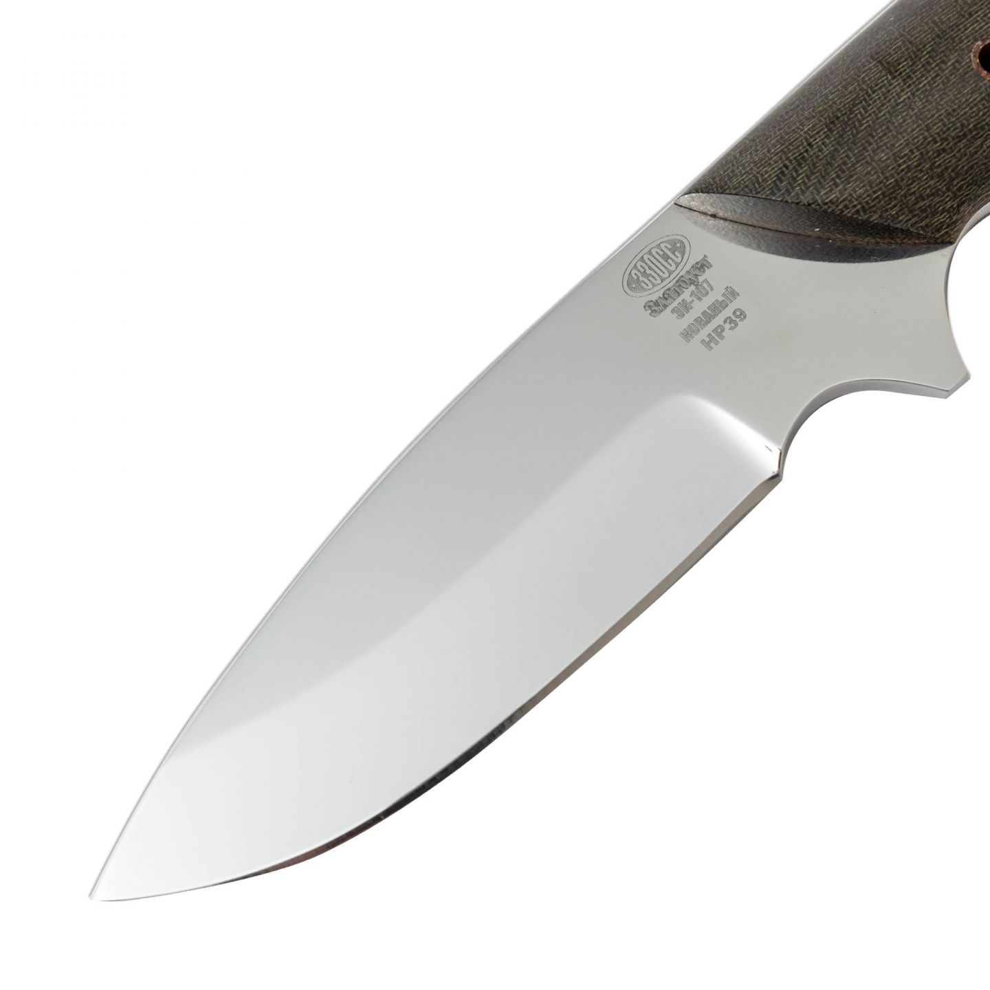 Нож «Сугомак» НР39 — компактный универсальный инструмент с каплевидной геометрией клинка. Режущая часть изготовлена из стали ЭИ-107, обеспечивающей высокую износостойкость, устойчивость к сколам и стабильную заточку. Накладная рукоять выполнена из текстолита, сохраняющего свойства при повышенной влажности, перепадах температур и механических нагрузках.